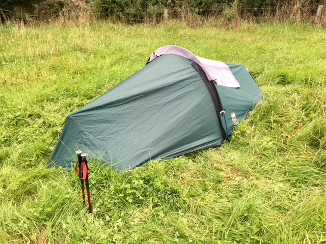After seventeen miles we reached Panpuntan Farm about a mile west of Knighton. Here was our base for the night. We were shown into the field that had just one other tent in it and were told we could pitch anywhere. The grass had not been cut all season and was a good foot long, giving us a lovely soft base if we could avoid the thistles.