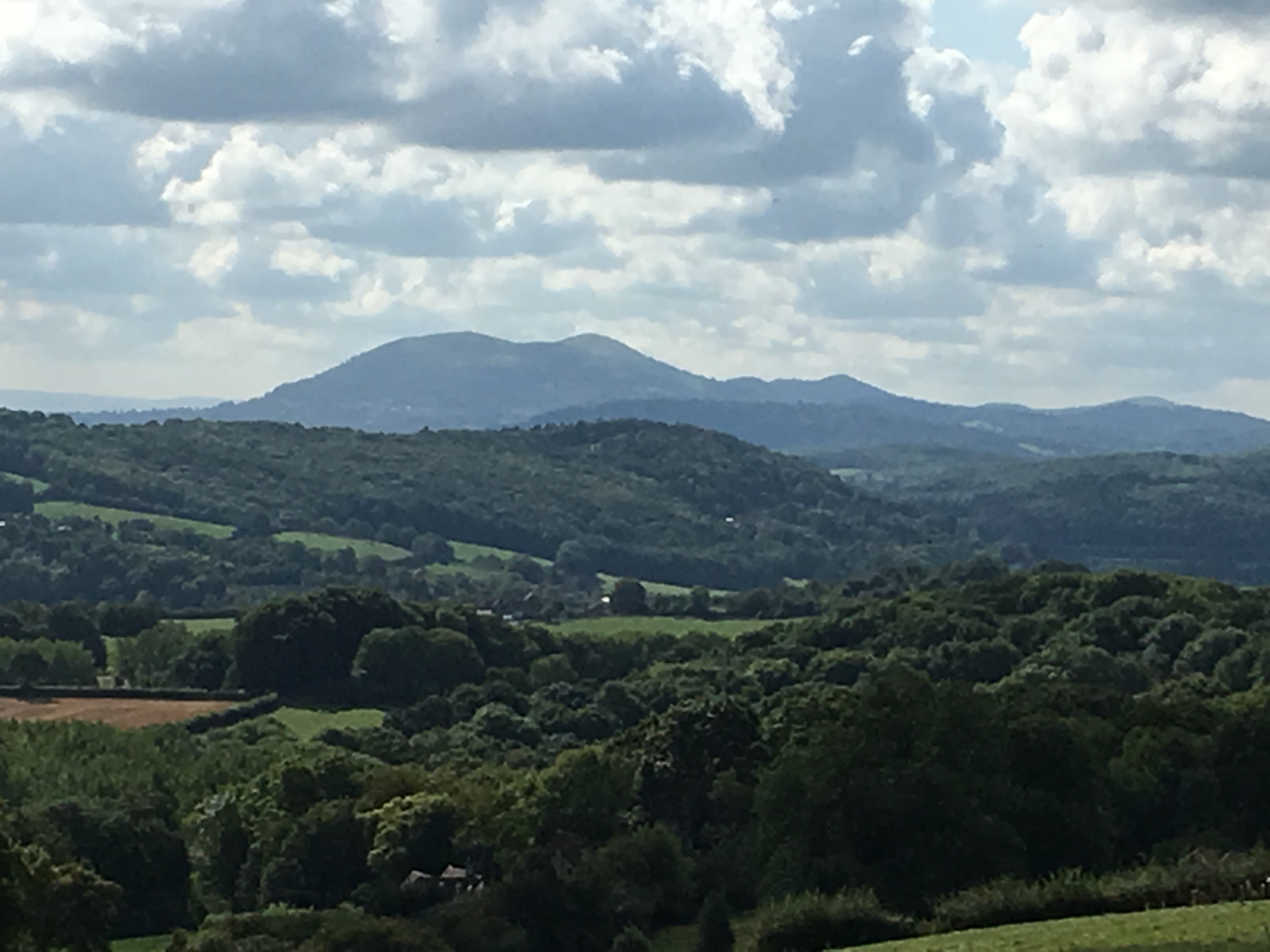 From Eastham I embarked upon a long, steady climb up to Fox Broadheath. On the way I came across a group of people and I was just about to remark on how rare it was to see people on this trail, when I realised they each had an even rarer alpaca each. At the top of the hill I popped into the Tally Ho Inn for a coffee. Behind the bar was a window on to a magnificent view across the Teme Valley towards Clee Hill and beyond. as I had climbed up the hill the view gradually materialised and in the clear air on the last day of August the light quality was fabulous.