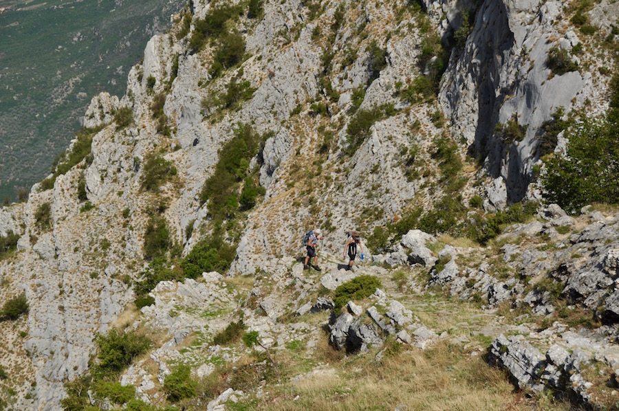 Dropping about 30m into Montenegro we sat on the grass in pleasant sunshine and ate our picnic lunch, pausing between bites of bread to take yet more photographs. I felt that those who had descended were missing a highlight but as Claire was not feeling too well, it was probably the right decision.