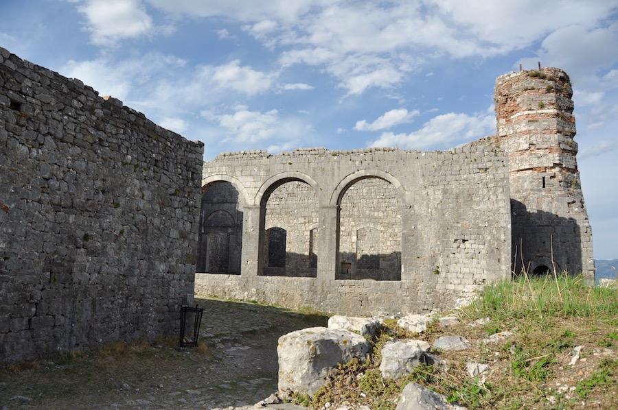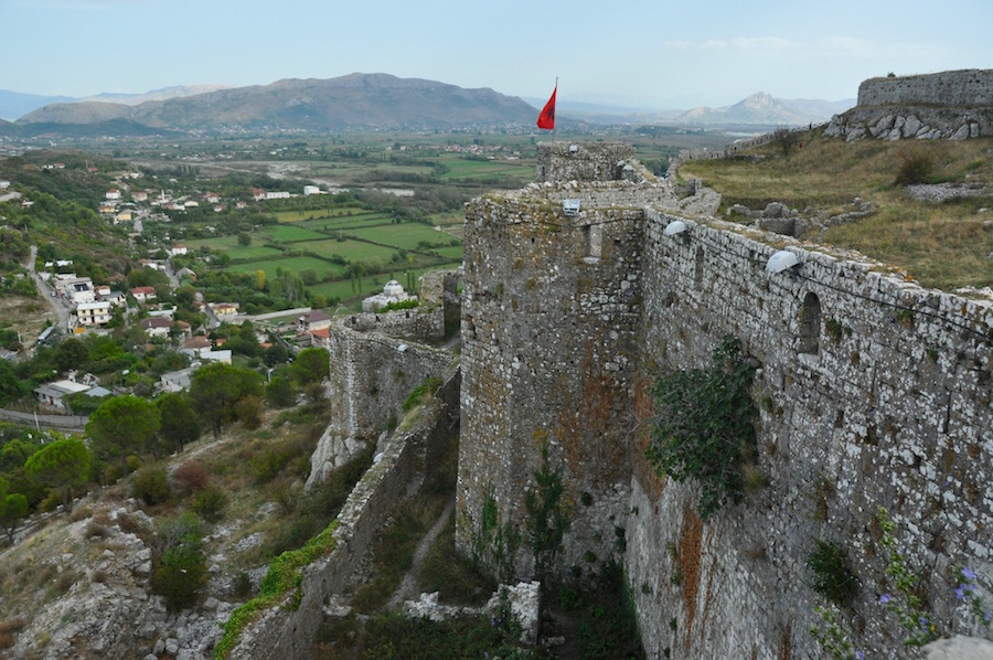 Just before we reached Shkoder we visited Rozafa Castle, an enormous hilltop fortification at the confluence of three rivers and overlooking the town on one side and Lake Shkoder on the other. The border with Montenegro runs through the lake and the far shore is fringed with mountains.