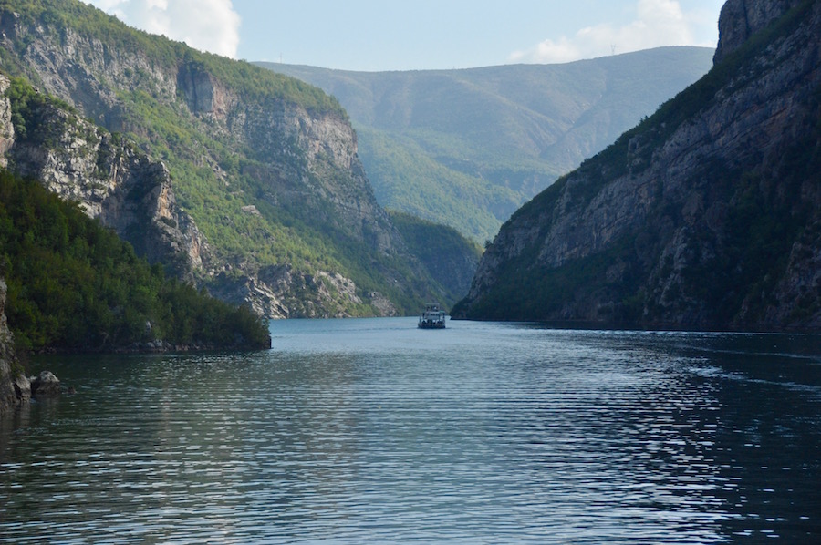 After nearly two hours we passed through a tunnel where the dam blocked the valley which created Lake Komani back in the late 70’s during the height of China’s influence in Albania. The lake is long and narrow as it snakes its way through what must originally have been a steep sided gorge. When it was created no people were displaced by it and we discovered, as we sailed up its length, that very few people live along its shores, because of the nature of the terrain on each side.