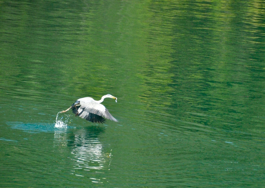 There was not a great deal of bird life on the lake, just the occasional duck and we saw frogs skimming across the surface, moving so fast that they hardly broke the surface with anything more than their feet. A heron fished by the side of the water was disturbed by our approach and flew off. As it did so it scooped up a frog and carried it off to enjoy elsewhere, away from noisy boats and prying human eyes.