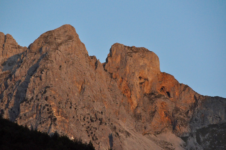 The following morning I sneaked out of my room early enough to catch the morning glow on the limestone crags, turning them orange. I had missed the evening glow, so I was determined not to miss the morning. It was not difficult as we had all drifted off to bed by 9.00pm and there are only so many hours you can sleep, or listen to the gentle breathing of your fellow room mates.