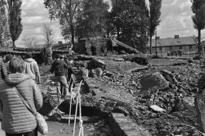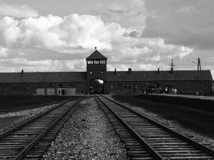 As they were forced out of the wagons, they were met by a welcoming committee of SS soldiers. The commander was also there to meet them. The prisoners were lined up in front of him and were ordered to file past, a cursory glance and a wave of his hand determined their fate; wave to one side and they would go immediately to the gas chamber, the other the labour camp. The majority were so weak and ill after the journey that they were sent to the gas chambers at the far end of the camp. These were destroyed by the Germans as they fled the camp just before the liberation by the Soviet army in January 1945, in an attempt to cover up the evidence. The destruction hid nothing and the full horrors of the previous five years soon became apparent.