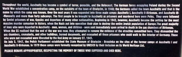 I wondered how Anna could do this job. Surely, reliving the stories of Auschwitz regularly must have an effect. She told us she guided for three days a week, the rest of the time she works in the archive office. She has a personal reason for being there as some of her family went into Auschwitz and never came out. However gruesome the story is the world needs to be reminded what went on during those dark years. You would hope that we learn from it but looking at other parts of the world where there has been conflict, I’m not sure we all have. Look and Cambodia, Rwanda, the Balkans, they all have gruesome stories to tell.