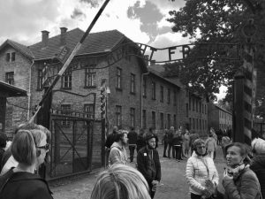 After an hour and a half’s journey through the countryside of Lesser Poland, we arrived at the expansive, already full car park for Auschwitz Concentration Camp. At the entrance we were met by our guide, Anna, and were quickly whisked through security, collected our radio receivers and head sets and embarked upon a tour of the site where one of the world’s most inhumane atrocities took place.