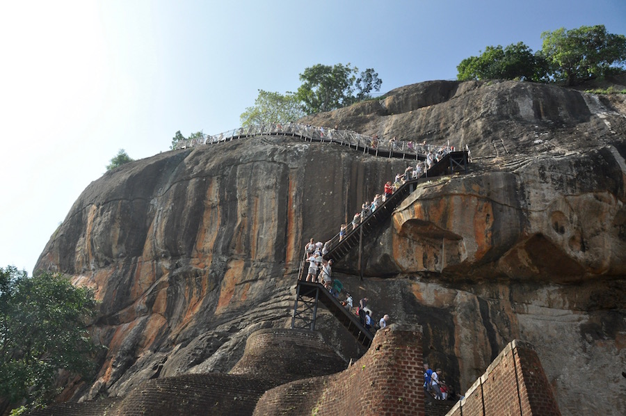 Following another morning of over-indulged breakfast, we set out to visit and climb Sigiriya, an ancient rock fortress with a fascinating history. There have always been religious significances in Sigiriya but back in the fifth century there was a king who had two sons, one, Moggallana, by the queen, the other, Kasyapa, by one of the King’s consorts. Although Moggallana was the rightful heir, Kasyapa sought an opportunity to seize power. Killing his father, Kasyapa took control of Sigiriya away from the residing monks and moved his capital to Sigiriya, a rock outcrop that could be easily defended. Meanwhile, Moggallana fled to India fearing for his life.