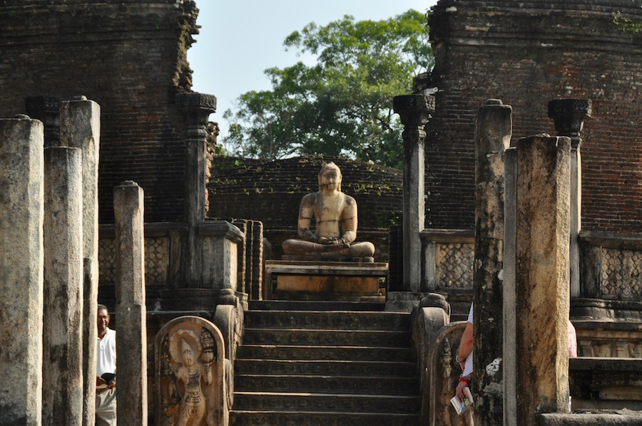 Polonnaruwa was the seat of south Indian Chola and Sinhalese kings almost a thousand years ago. It is rich in culture and history, with the ruins giving us clear pictures of the lives of people during that period. Before we visited the ruins, Sanath, our guide, took us to the archeological museum to give us some background information, to see models of complete temples and to learn something of the history. We then walked from temple to temple, all with their own specific orientation, giant Buddhas made of hand crafted bricks and covered in plaster. The quality of workmanship and the techniques needed were way ahead of their time. Ancient streets were revealed with the foundations of shops on either side, suggesting the city of wealth.