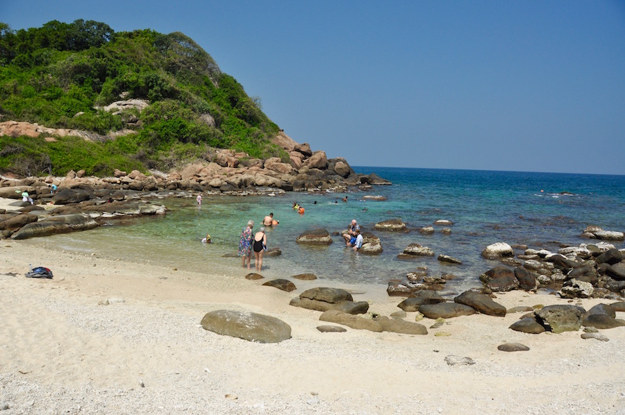 The following morning, nine of us kitted ourselves out with flippers, masks and snorkels before heading down to the beach to help launch our boat and head out to Pigeon Island, a journey of about half an hour. It really was an idyllic spot, although we were not alone as several boats from other resorts were also there.