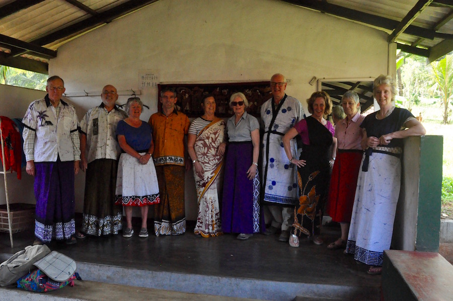 Watching the production of batik garments and pictures was particularly interesting, requiring a significant amount of skill. The work is largely carried out by women of middle age and beyond, and one cannot help but wonder how long this craft will continue without young recruits learning and taking on the skills. While the working conditions are uncomfortable at best, with strong chemical smells from the paint, hot wax and even hotter water above wood burning stoves it is not likely to attract the next generation. There were some beautiful examples of their work, and in order to attract us into buying some we were all dressed in batik outfits.