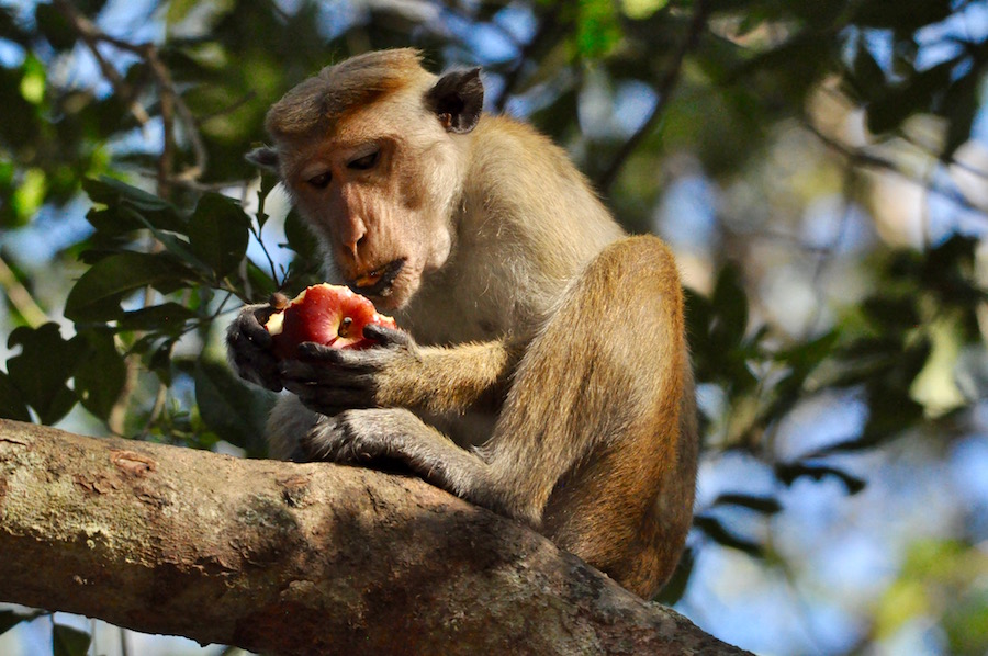 We were carrying a picnic breakfast and after a couple of hours, as before, we stopped for a leg stretch and a bite to eat. This was not in the same place as we previously stopped. In the trees there was a waiting reception of monkeys, Toque Macaques, looking very cute and innocent. This was so far from the truth. They obviously recognise the white, cardboard picnic boxes. They bided their time, waiting for an opportunity to strike. They would change position, distract us and pounce. I did not eat all of my breakfast so I packed it up and put the box under my seat. No sooner had I turned my back that a monkey was in the jeep, under the seat, taking out my apple. Another followed and stole my satsuma. The final act of bravery came when I was sitting in my seat and a monkey leapt into the jeep, under my seat and stole from my box. I reacted, the monkey leapt from the jeep, turned from its position in an adjacent tree and bared its teeth at me. How rude.