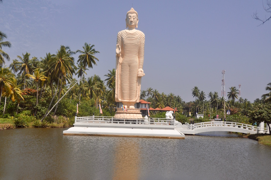 The following morning we left the luxury of the Aliya Resort (4*) and headed north east to Trincomalee for a bit of slumming it in a 3* hotel. Trinco Blu Hotel was far from slumming it for here the coast is beautiful with long stretches of white, sandy beaches and warm seas. Our room opened out onto the gardens that preceded the beach. In the centre of the gardens was an inviting pool. The staff were all friendly, welcoming and informative, so much so that many of us booked for an Ayurvedic massage and a trip out to Pigeon Island for a snorkelling opportunity on the coral reef. One could not ask for more. Here we could relax more, swim, wander along the beach to a small estuary with mangroves on one shore, fishing boats sitting in the sand on the other, all overlooked by a temple.