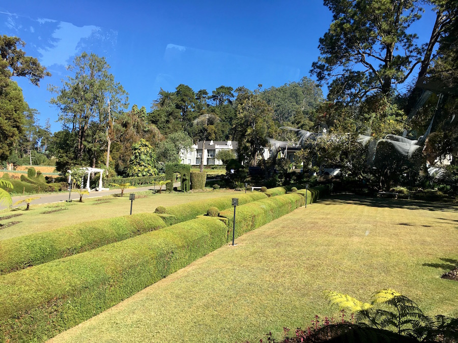 Nuwara Elia is a little slice of England in the middle of the Sri Lankan hill district. There are mock Georgian houses, some of which are splendid hotels. We were staying in St Andrew’s with wood panelled walls, roaring log fires, manicured gardens and a snooker room. A golf course ran through the middle of town, crossing the road on several occasions. After, what for me had been a fairly stressful day, what better way to unwind than a game of snooker as a foursome. I don’t think I have ever played on a full size table before. I partnered Richard because he said he had played before and we were against David and Simon.