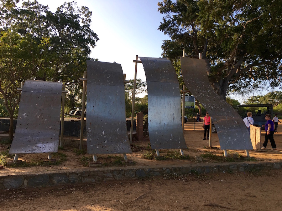 Two hours into the safari we came to a point by the beach where we could stretch our legs. It was also the site of a memorial sculpture to the 2004 tsunami. It was very simple and consisted of four sheets of metal in the shape of a wave, each one indicating the height of the four waves that swept in and 8.30am on Boxing Day 2004. While animals sensed what was to come and ran, flew or climbed trees to escape, 28,000 Sri Lankans and tourists died that day. In the days to come we were to learn more about, and see the effects of, that terrible tsunami.