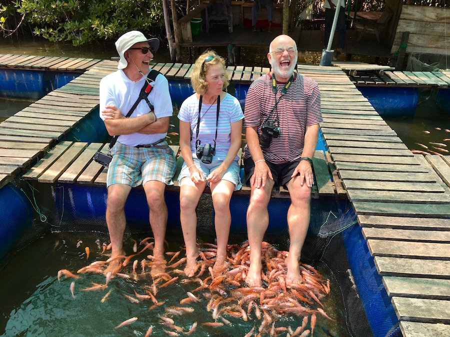 On our way back we called in at a floating fish pedicure centre. The raft is divided up into a number of tanks, each with a multitude of fish in. We were told to avoid the larger fish. There was one tank with a couple of fish about eighteen inches long. You would need to count your toes afterwards.