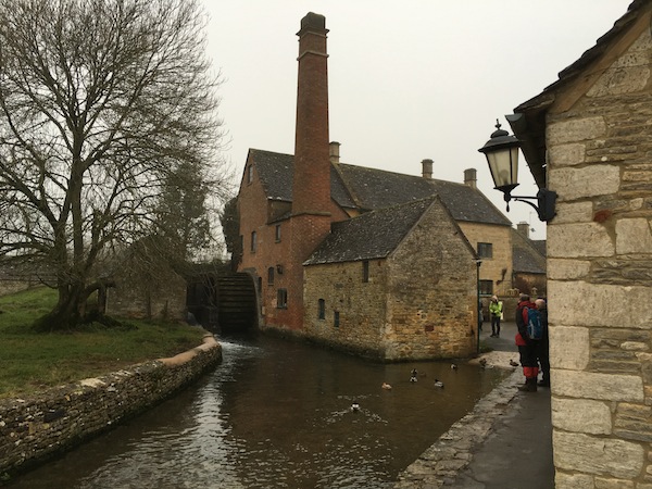 A mile further on we came to, what I consider to be even more beautiful, Lower Slaughter with its water mill, now a museum, superior gift shop and café, with the river running gently through the village, home to many well fed ducks. Like Upper Slaughter, Lower Slaughter boasts an even more spectacular Manor House, again converted into a very smart hotel. On this occasion it was closed to the public as it had been completely taken over by a private event. Not that we were considering dirtying its carpets with our muddy boots. Even the country house inn was too smart for us, so we just passed through.