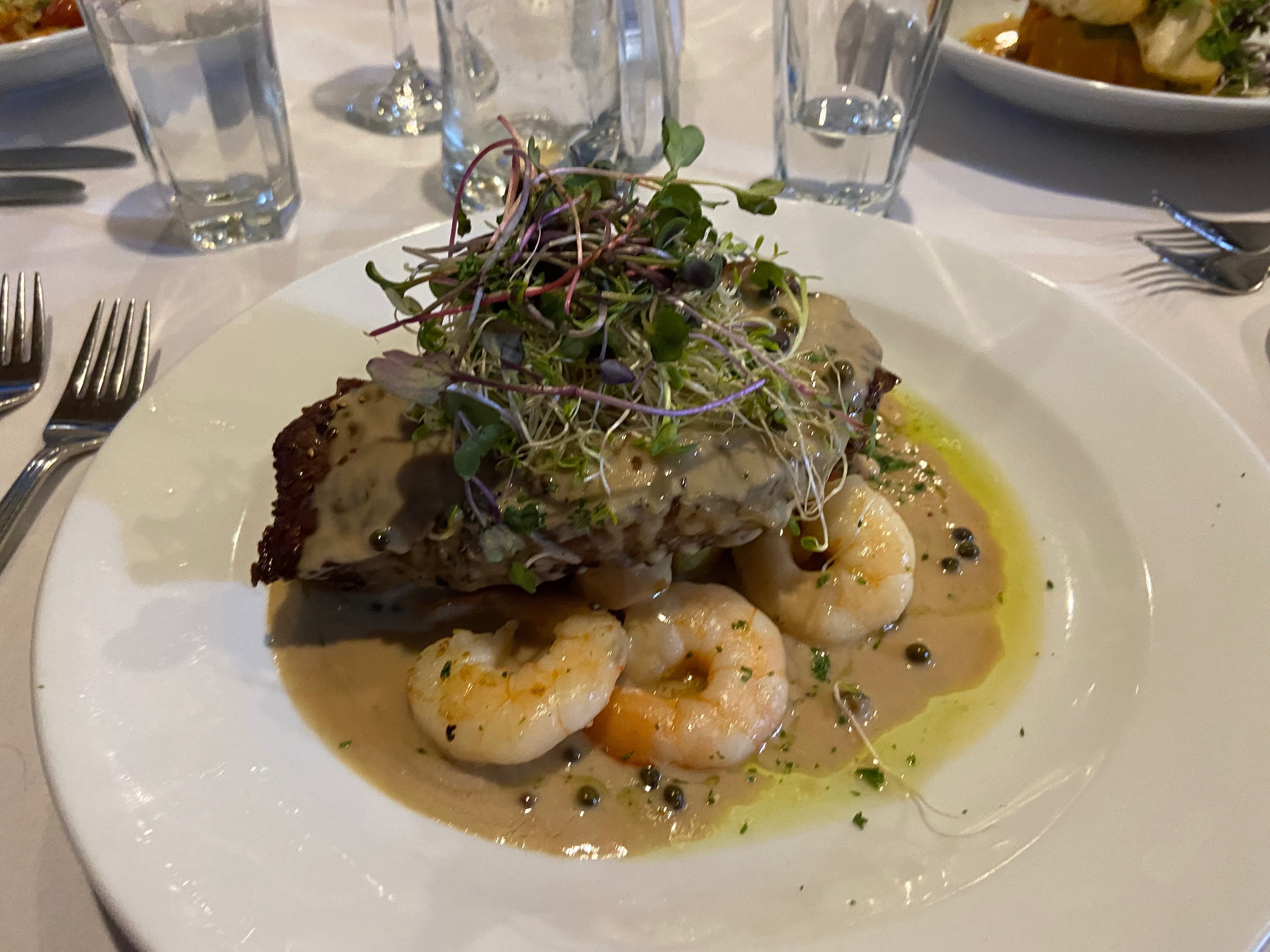 That evening, we enjoyed some bubbly on the deck to celebrate Chris’s birthday before heading out to Bully Hayes Restaurant and Bar for a celebratory meal.