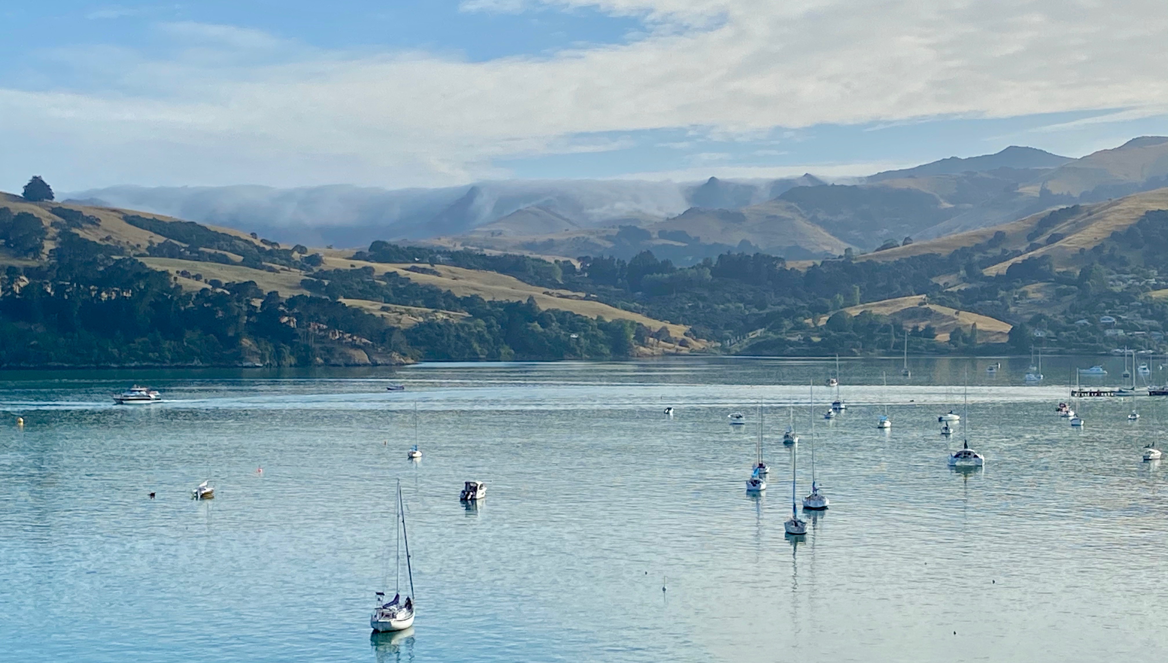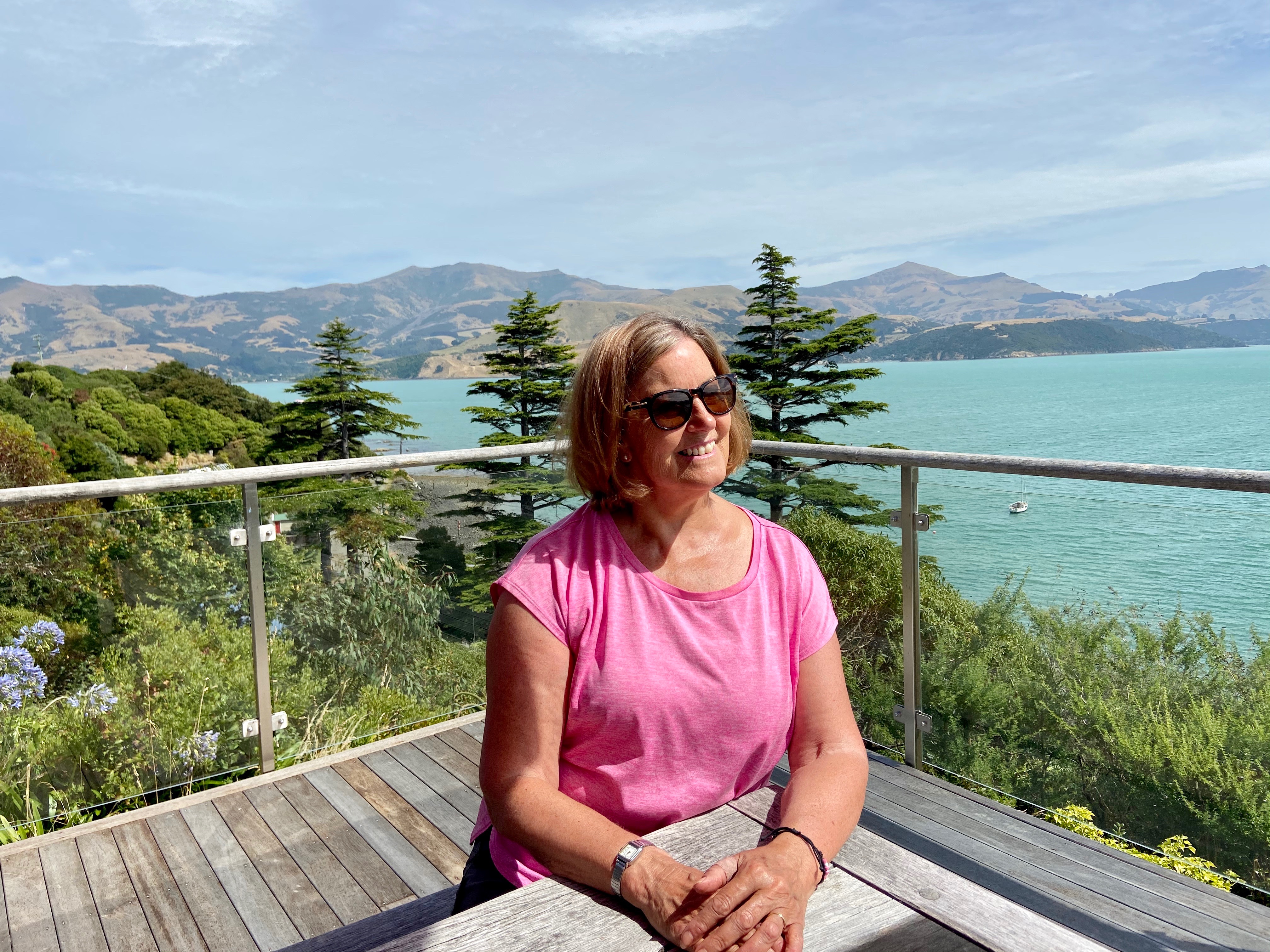 There was no rush in the morning. It was Chris’s birthday, so we enjoyed Akaroa at leisure. While Chris and John went for a stroll, the rest remained at the house, enjoying the deck and watching small boats going backwards and forwards . What were they doing?