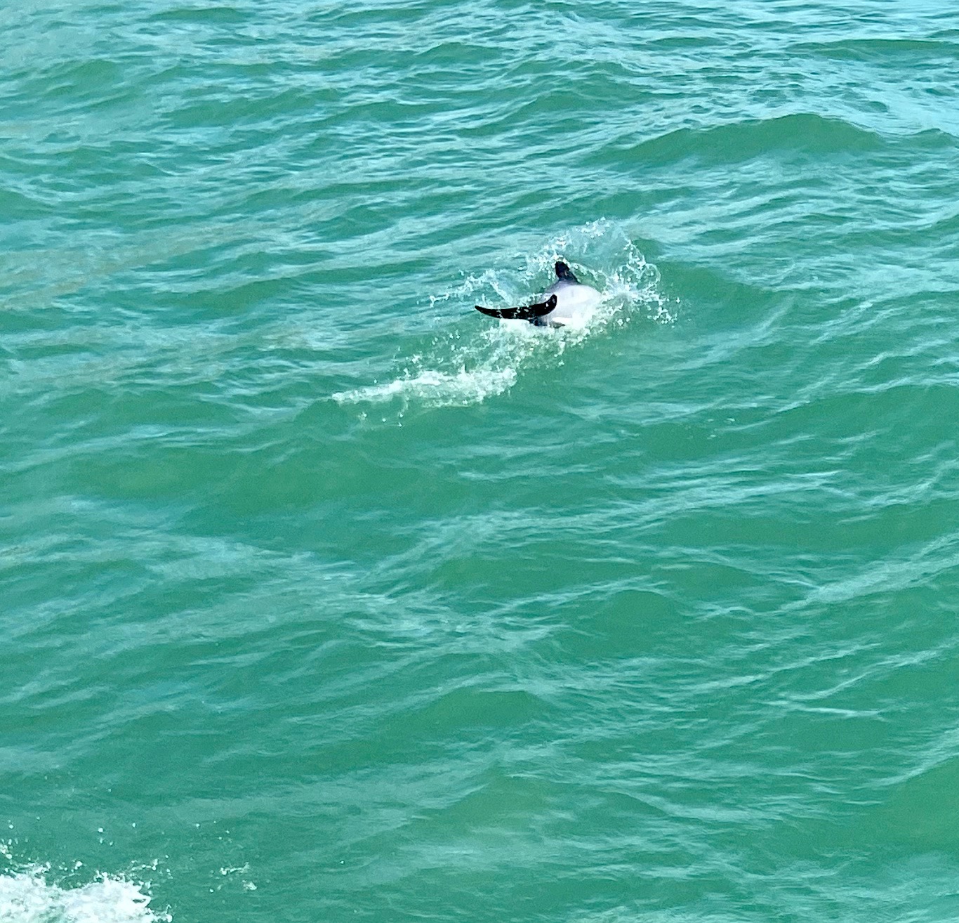 I sensed some apprehension on the faces of Chris and Chrissie, so I made the decision that I didn’t want to do it. Immediately, they decided that they didn’t either, so we left John to experience it alone. We chose to do an alternative cruise around the inlet where we would still see Hector’s Dolphin.