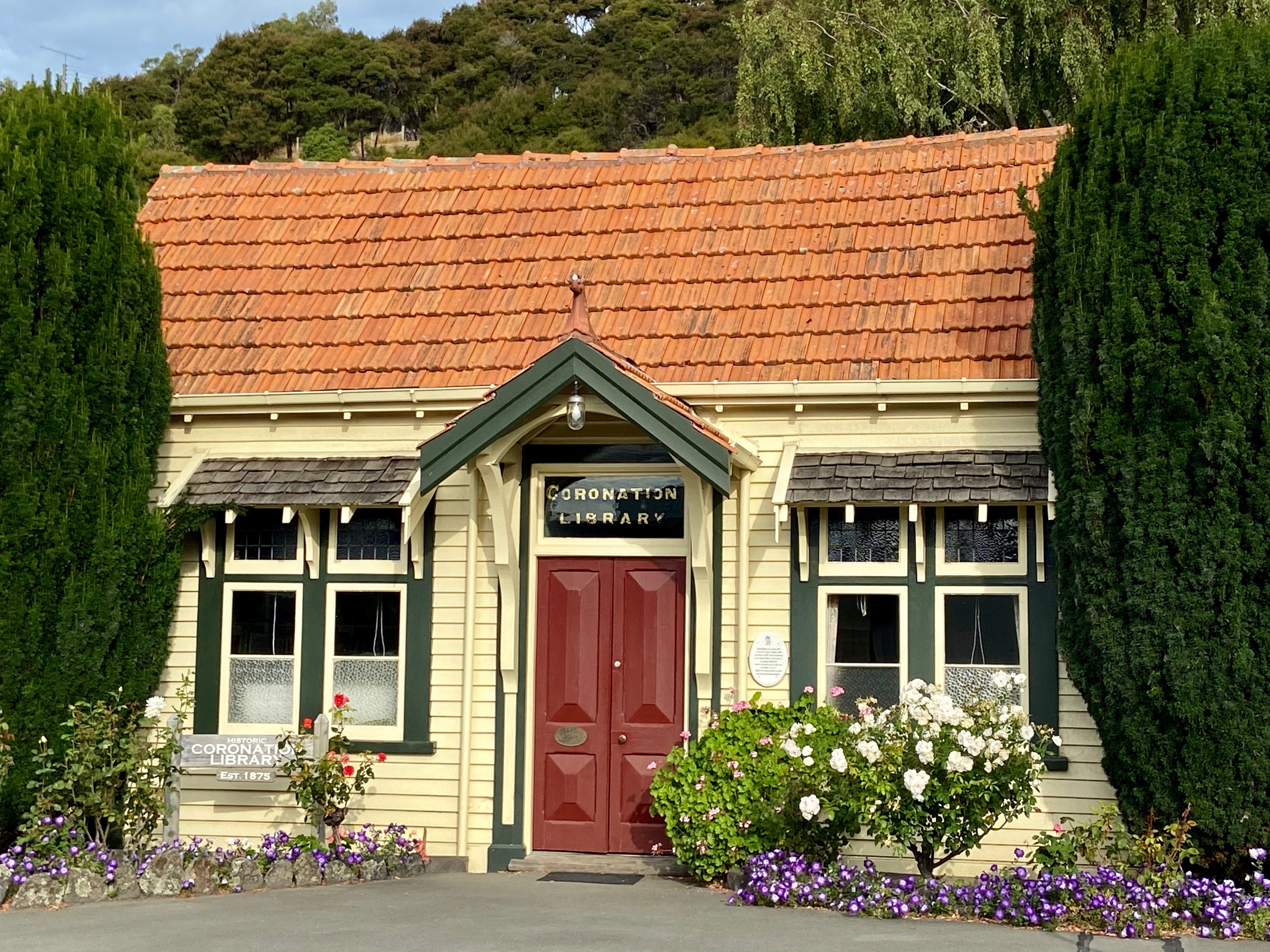 Akaroa is Canterbury’s oldest town. It, and the whole of the Banks Peninsula has a very French feel to it. This is where French settlers came in 1840, and it is said that French interest in New Zealand speeded up the Whaitangi Treaty and Britain annexing New Zealand. Now the resident population is declining and many of the desirable properties are holiday homes. It has some wonderful old buildings behind the waterfront properties, including the library and theatre shown above.
