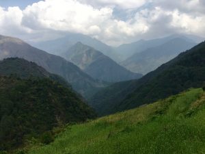 We eventually reached the last settlement in the valley bottom before embarking on the climb up to Amjilosa. I drank a bottle of coke, tea, with sugar, water and noodle soup. After at least an hour’s rest we set off, crossing the river for a fourth and final time. I felt so much better following my sugary intake. Because it was steep I could find a rthythm, control my breathing and my temperature. I led most of the way up the zig-zag path. Amjilosa came into view and we were there. I did not think I would have reached it a few hours earlier. Now I have to psych myself up again for tomorrow’s challenging walk to Gyabla.
