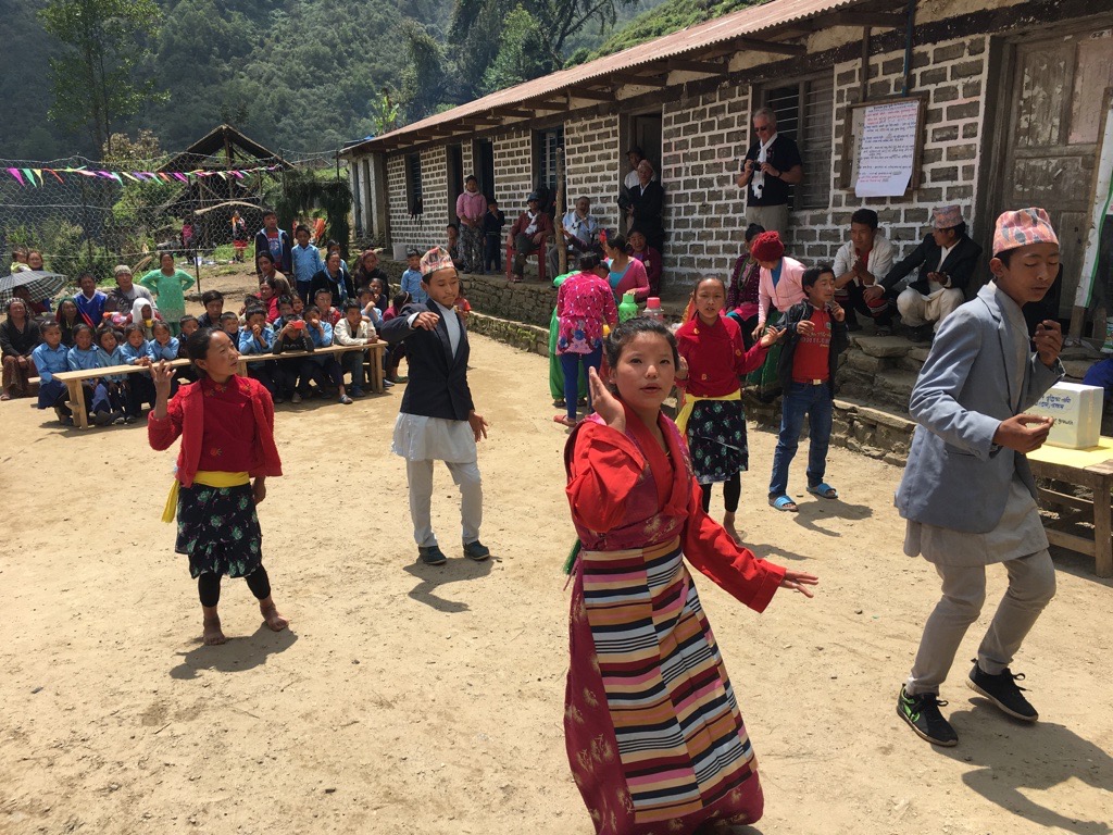 In the morning we woke early as we had a busy day celebrating the ‘Build Back Better’ programme after the 2015 earthquake. A number of important big wigs were also staying in the lodge including the Resource Person, the DEO (District Education Officer) and a photographer and camera man from Kantipur, a Kathmandu television station.
