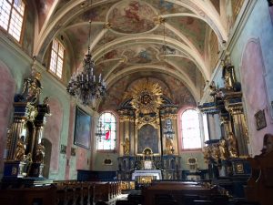 There was too much to see and take in in one go, but we did make time to visit the small church of St Adalbert’s, standing alone in one corner, at an angle, breaking up the symmetry of the buildings around the perimeter. The reason why it stands out is that it was built in the 11thC, which means it pre-dates the square. It is a mix of pre-Roman, Roman, Gothic, Renaissance and Baroque architecture. As soon as you walk in you can tell it is old. You drop down two metres as the floor level is that much lower than the rest of the square.