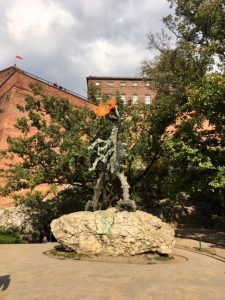 In the afternoon we walked around the Planty, a green area that surrounds the old town where the medieval walls once stood. This led us to Wawel and the ramp which leads up to the castle with a huge variety of architectural styles, as additions and alterations had been made with each incumbent king. The highlight for me was the courtyard, a Renaissance style building designed and built by artists from Florence. It was full of grace, elegance and style; such a pleasure to gaze upon.