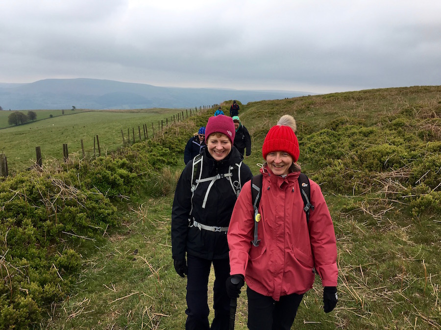 Most people who climb Sugarloaf tend to do a quick up and down. It is a hill that can easily be climbed and descended in a little over an hour, particularly from the car park at Mynnydd Llanwenarth, which is where we were starting out from. However, I had not planned a quick up and down, I wanted to give the ladies a much bigger picture, an opportunity to see Sugarloaf change shape as we walked round it’s southern and Easter flanks, to walk the long ridge west from the summit with expansive views of the Black Mountains and the Usk Valley leading us towards the Brecon Beacons.