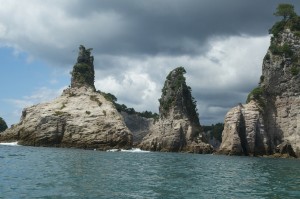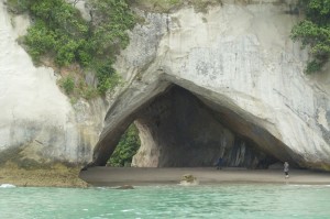 Reaching Cathedral Cove, named because of the shape of the arch linking the two halves of the beach, is spectacular. A large column of rock rises out of the sea and another lump seriously eroded around its base make this a fascinating cove. It is possible to walk to this cove but it takes time and when you want to see everything, sometimes it is best to take the easier option. I think probably the best way is by sea kayak, which allows you to land and see everything from a different perspective. Sadly we did not have time to go ashore.