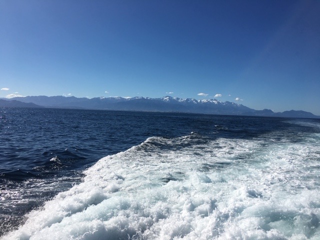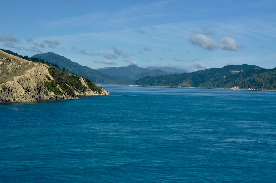 The ferry across Cook Strait from Wellington to Picton is a three and half hour journey full of interest. From the moment you set sail you see the Wellington waterfront shrink in the distance and as you drift out of the harbour and into Fitzroy Bay. You are never very far from land, even when in the middle of Cook Strait. The sea can be interesting in bad weather, partly because there are conflicting currents being squeezed between the islands. Today it was relatively calm. All the time the rugged coast of South Island is getting nearer. For the last hour of the crossing we travel slowly up Marlborough Sound, never far from land on either shore. The water is beautifully blue. On the shore there are some handsome waterside homes. At the head of the sound is Picton, a lovely coastal town; the gateway to South Island.