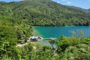 Furneaux Lodge is a former home that has been converted into an accommodation lodge. The original house where the bar and restaurant are, has the original panelled walls and décor to match. It all looks a little dated but its position on the edge of the sound is to die for. The accommodation spreads out in bungalows of varying size catering for every pocket. We learned that it has been purchased by a Marlborough business group and they have plans to redevelop the site. That includes knocking down the rooms we were staying in, to build a waterfront restaurant and bar, converting the existing facilities into a conference centre.