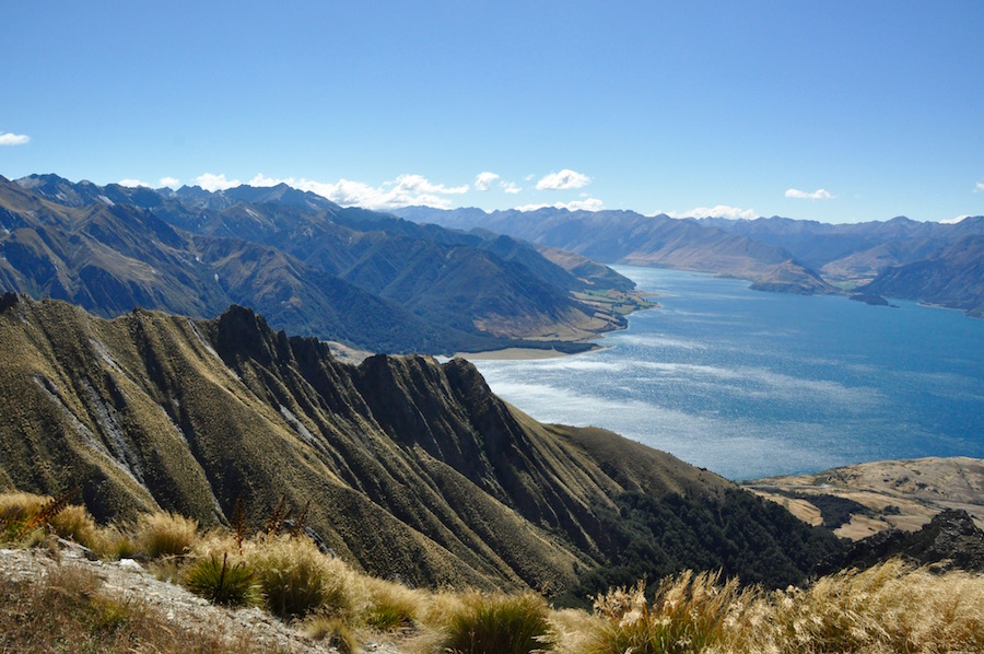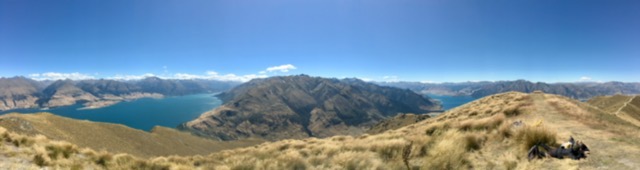 Instead, I chose Isthmus Peak, a peak of 1386m on an isthmus between Lakes Wanaka and Hawea. It was a glorious day. It proved to be a long, often hard, climb but, all the time there were outstanding views of Lake Hawea below, which spurred you on, knowing that the views would only get better.