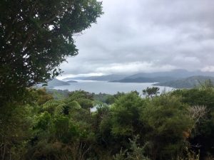 As the morning progressed and we got closer to our destination, the weather was improving. Much of our conversation on the last half of the day centred around animal poo. There were some examples on the track, which could have been either very tidy cows or large pigs. We never did get to the bottom of the conundrum, despite involving locals in our conversation. We saw cows in fields below the path and we were made aware that there were wild pigs in the forest. Who the culprits were for fouling on the path, we shall never know. In glorious sunshine, we arrived in good time, soon after 1.00pm. Thankfully, the little caravan café at the end of the trail opened at 1.30 and we were able to take some refreshment and wile away our time comfortably, waiting for our water taxi to take us back to Picton.