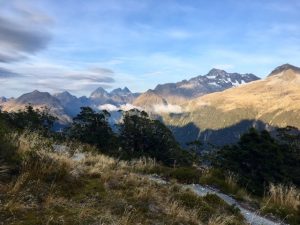 Wanaka is a lovely town, perhaps a little sleepy, but it is surrounded by beautiful mountains. Which one were we going to climb? I had originally thought we might climb Roy’s Peak but had been put off it by someone who knows the area well. He had recommended the Rob Roy Track as the best walk in the area, but, if I am honest, having done a little research, I was not convinced. It meant driving on unmade roads and across rivers, and I was not keen to take my hired bus. Had I done my research a little more thoroughly, I would have discovered that there is a bus service to take and collect you from the walk.