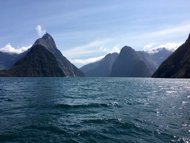 With a mean annual rainfall of 6,412 mm (252 in) each year, a high level even for the West Coast, Milford Sound is known as the wettest inhabited place in New Zealand and one of the wettest in the world. As we approached there was no sign of rain, just glorious sunshine. Wow! How lucky are we?