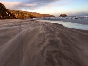 I received an email to tell me that the Penguin Experience had been cancelled. After a fish and chip supper we went off to Allan’s Beach on the other side of the peninsular, where sea lions are often ashore. It was no less windy on this side of the peninsular and grains of sand scurried in waves across the beach. It was very bracing, but we did not find any sea lions. I think if we had been more vigilant and searched among the sand dunes we might have found some.