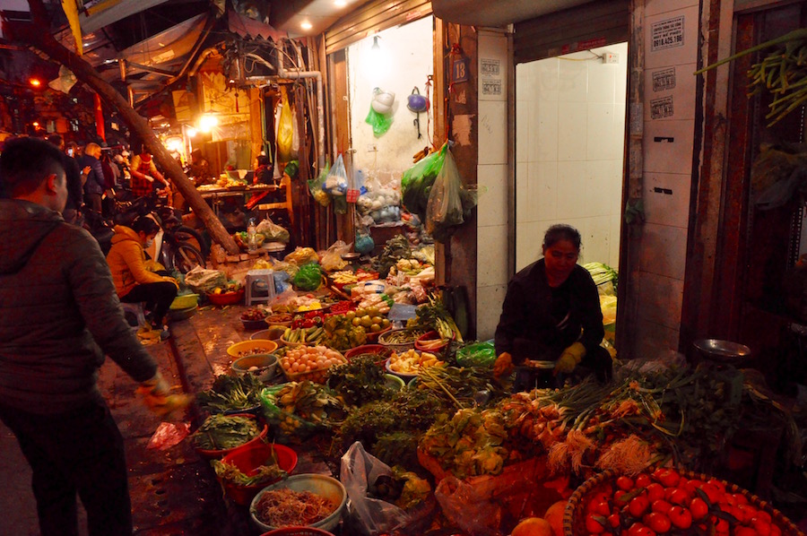 Having settled into the Hanoi Emotion Hotel, a very narrow, eleven floor hotel, we went into the old quarter for dinner. It was a fascinating walk through narrow streets alive with activity; so many interesting sights, sounds and smells. Groups sat on children’s plastic stools eating noodles produced by pavement cafes. There were some stunning displays of flowers, all ready for the Tet Festival.