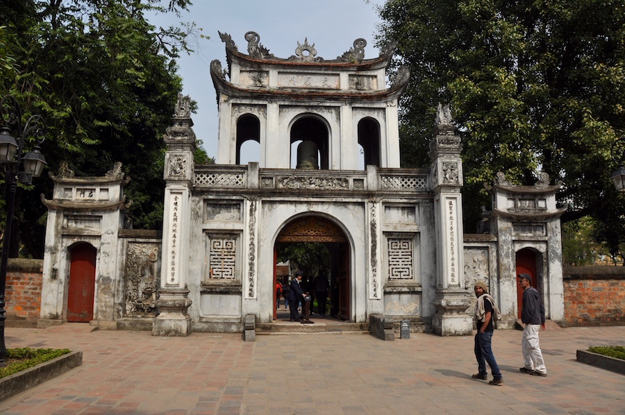 Dragging ourselves away from motorbike watching we visited the Temple of Literature dedicated to Confucious. Built in 1070 it is the site of Vietnam’s first university. There is a lake in the grounds beautifully described as the ‘Well of Heavenly Clarity’. It is a site of traditional architecture, stone carvings, Buddhist temples, bonsai trees and tat. Many of the stalls were selling really tatty items aimed at the Tet Festival. We made a point of trying to find the most grotesque, cheap and nasty Tet tat.