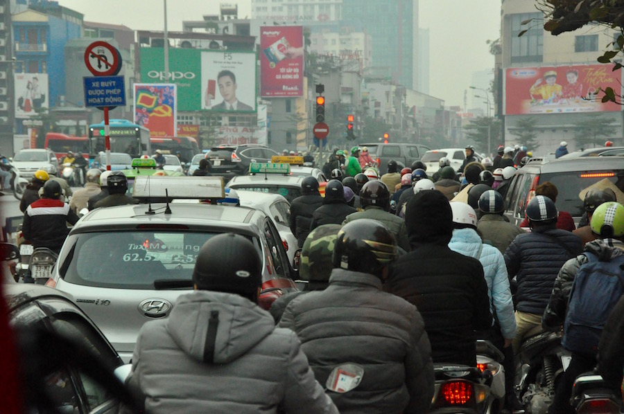 As the aircraft descended towards Hanoi it scythed it’s way through the murky mist gradually revealing a grey landscape below. I suspect that the murky mist is a combination of normal atmospherics and pollution. Time would tell.