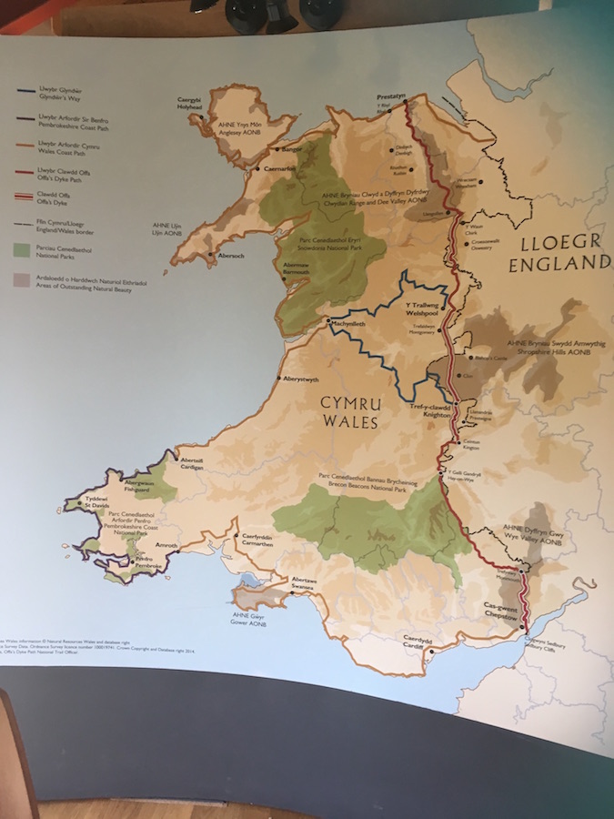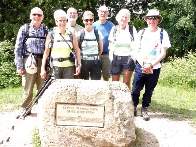 Any mistrust they might have had with us soon dissipated by the sheer beauty of the walk and the countryside we were experiencing. Singing rousing songs also helped make sure they remained cheerful. Despite it being two miles longer than they were expecting, we reached Knighton in good time, arriving at the Offa’s Dyke visitor centre at bang on 4.30, the time when they stop serving tea and cakes. However, the girl behind the counter was so obliging she made us tea and served us lovely portions of chocolate sponge cake. My plans to be abstemious on such occasions seems to have deserted me, but I deserved it. I had, after all, walked two miles more than anybody had expected!