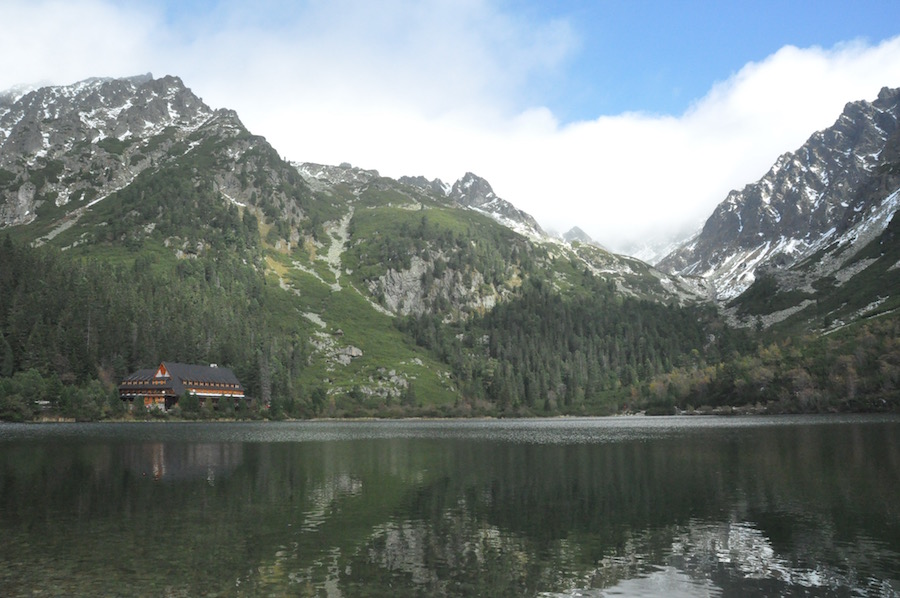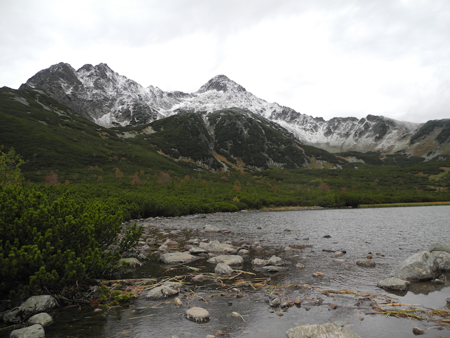 I guess it was too much to expect two consecutive perfect days. While the sun shone in the valleys to the south, cloud hung heavily about the High Tatras. Disappointingly, it was also raining by the time we reached our start point for the day at Popradskom Pleso, a lake under Mount Rysy, Poland’s highest peak. Although some of the snow had melted there was still quite a lot covering the rocky path. Our itinerary hoped we would climb Mt. Rosy but due to the weather our aim now was to walk up to Velke Hincovo Pleso, at about 2200m. It was pretty miserable walking; having layered up for the rain we were sweating profusely, so either way we got wet.