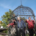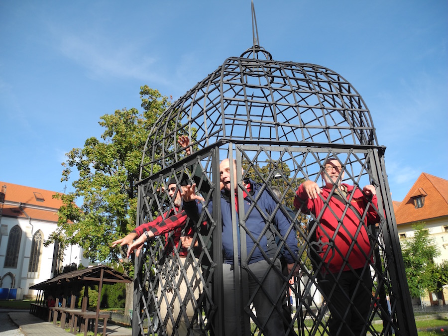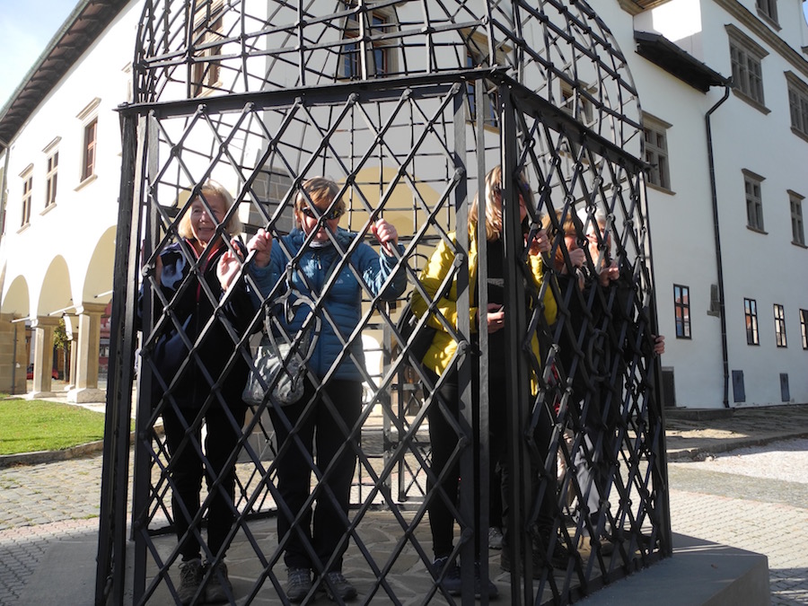 The small piece of architecture that interested and amused us most was the Cage of Shame. There were numerous misdemeanours that could lead yo to spending a night a the cage from gossiping, cheating on your wife/husband, bad manners, being drunk in a public place and, if you were a woman, out during the hours of darkness. A spell in the cage, where you were the ridicule of all those who know you, where people were allowed to spit or throw stones at you, would soon bring you into line. It had to be done. We insisted all the females in the group spent some time in the cage, just long enough for a photo or two. In these days of equality, the men then posed in the cage for pictures. I think we were the better actors!