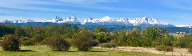 After about two and a half hours we emerged at the top of the gorge. The mixed forest was beautiful and every so often we got glimpses of the full length of the High Tatras. It was such a relief to have such a perfect day. The path gradually descended to the valley below, a valley that could be no where other than Slovakia. Looking out across it from our lofty position each village seemed to be self-contained. There was nothing between them, no random houses or barns, just fields and then the next village. It held a beauty all of its own and was unique to our experiences in the UK.