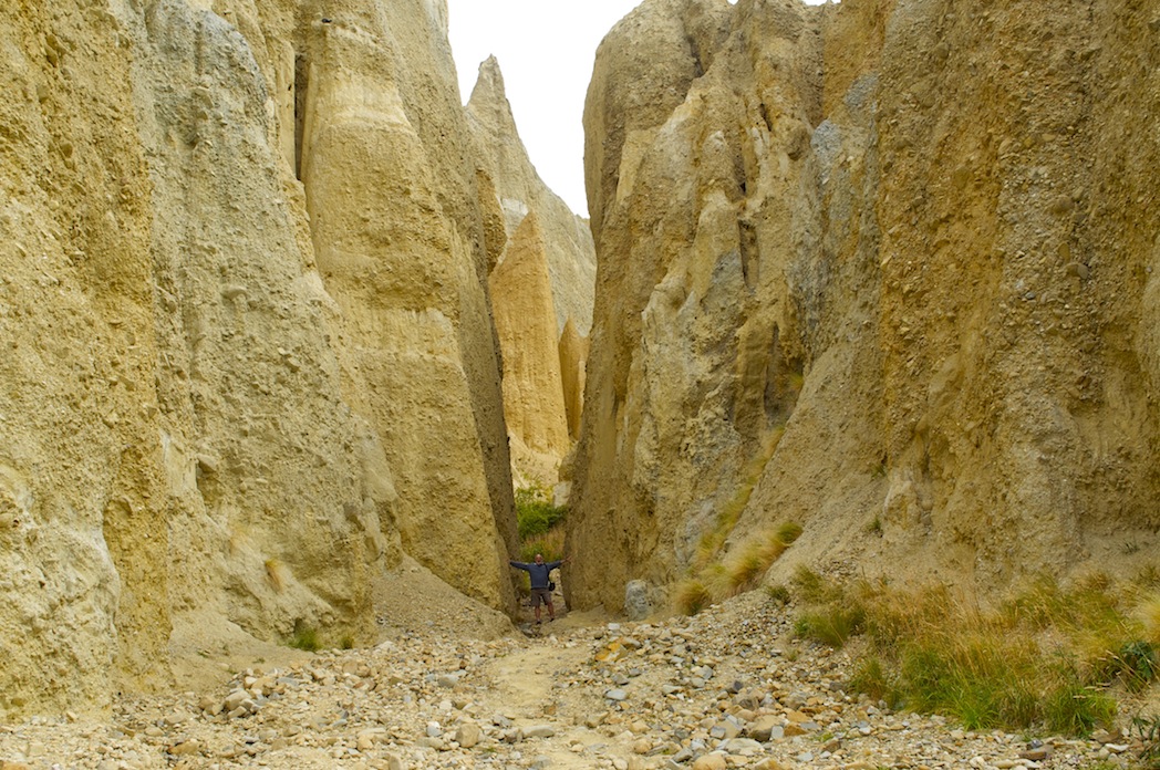 On the headland between Curio Bay and Porpoise Bay we found a shack selling hot pies. Hot pies for breakfast? Why not? From this vantage point we could look down at the sea battering away at the fossilised forest of Curio Bay and the long sweep that makes up Porpoise Bay, where in better conditions we might see Hector’s Dolphins cavorting in the blue water along with surfers. However, not today for either, I am afraid.