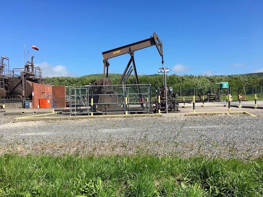 As we left Kimmeridge we were able to admire some industrial heritage in the form of the Kimmeridge oil field. Searching for oil in the shales off Kimmeridge began in the 1930s but it was not until 1959 that they really struck ‘black gold’. Pumps or nodding donkeys were built to extract the oil and the one adjacent to the path started production in 1961 and has been pumping ever since. In its heyday it produced 350 barrels a day but now tends to only achieve about 50 barrels daily. When one thinks of oil fields, one tends to think big, of an industrial environment as far as the eye can see and of environmental damage. This one is small, inoffensive and part of the industrial/cultural/environmental heritage of the Jurassic Coast.