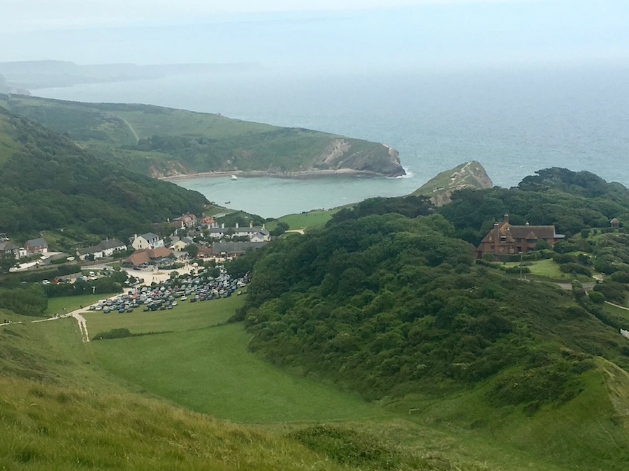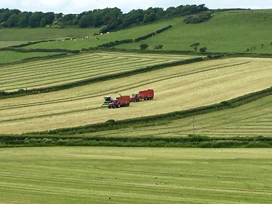 One of the highlights of the day was calling into the Moonfleet Manner Hotel for a very mediocre coffee but where we had some fun banter with a group of about fifty ladies having a coffee morning meeting. It was soon after this that we left the water’s edge, gained a little height and got a bit of a view. We were walking through fields of cut hay with its beautiful aroma. Farmers were making the most of the settling weather to gather it in. It painted a pleasant rural scene.