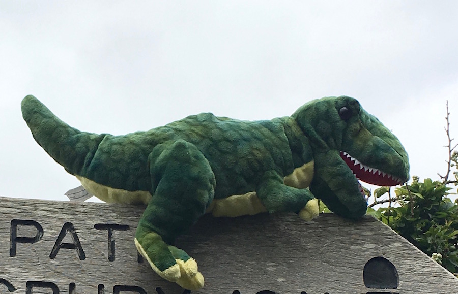 I feel here is the time to digress, to stray from the point and mention T-rex, or Rex to his closest friends. I brought Rex with me to be a companion, to enjoy walking the land of his ancestors and possibly meet with a fossilised relative. I chose this instead of the usual award, given daily to someone who has done or said something worthy of being reported. I chose it because some members of the group cannot live with the humiliation of being made a public spectacle. I was showing compassion to my fellow walkers, thinking carefully of their sensitivities. So it became a bit of a shock when, at every opportunity, Rex would be stolen from my bag, or his advantageous perch to be hidden from me and for him to be hidden from his wonderful surroundings. The group took joy in my humiliation, my anxiety for the welfare of Rex. What concerns me more than anything else, is that the perpetrators of my humiliation were the very people I was trying to protect. It is clear that there are some people, not only in the world, but in this group, who take great pleasure when they can dish it out but cannot take it themselves. Just you wait ’til next time, my friends, the gloves are off!!