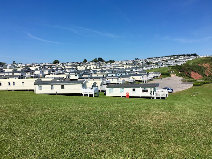 One of the problems we faced as the walk progressed was where we could find any shade for our lunch. Wherever there were trees there were thick clusters of nettles. It was now so very hot and the sun was very strong, it was important that we gave ourselves a break from it. Unfortunately, the only place that gave us any shade at all was a tall hedge, which meant that we had to sit facing the worst of all caravan parks along the entire trail, Devon Cliffs Caravan Park. It was a town in its own right with acre upon acre of static caravans. At the core was a pub, a restaurant and a supermarket. As we sat there nibbling our sandwiches we devised ways of destroying it. The simplest was to ask the army who have a firing range adjacent to it to turn their guns around.