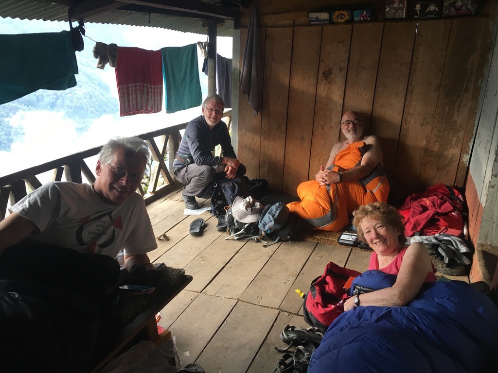 Climbing up further from the school, we eventually reached a path that contoured high along the hillside. After about an hour we reached our overnight accommodation, the house belonging to one of the Sewalung teachers, where Tim and I stayed in 2016. The difference this time was that there were ten of us, plus Rajendra, Passang, Sujata and eight porters. There was a surprisingly large amount of space available to fit us all in, although Tim, Kate and I elected to sleep on the upstairs veranda. That produced one of the best night’s sleep of the trip.